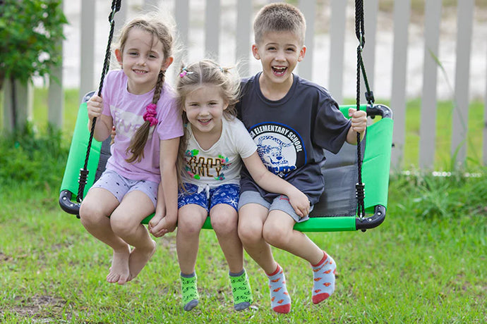 This 40" steel-frame swing has a spacious, comfy seat for multiple kids. The adjustable PE ropes work for all ages, making it durable and versatile. Kids can swing sitting, lying, kneeling, or standing—great for balance and coordination. Easy to hang from trees, swing sets, or indoor beams. (Please note:tree straps are not included.)